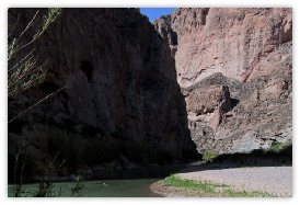 The Rio Grande River starts at an elevation over 12,000 feet in the mountains of southwestern Colorado and ultimately falls thousands of feet vertically before it forms the border between the state of Texas and Mexico. The river has cut many deep canyons through the flat lands of New Mexico, each of which enhances the scenery. The Rio Grande is the 3rd longest river in America and provides for substantial electricity, farm irrigation, public water supply and entertainment along its way.